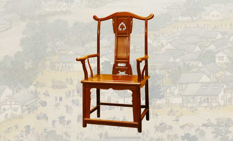 再則是官帽椅,官帽椅可分為南官帽椅和四出頭式官帽椅兩種。所謂四出頭,實(shí)質(zhì)就是靠背椅子的搭腦兩端、左右扶手的前端出頭,背板多為“S”型,而且多用一塊整版制成。南官帽椅的特點(diǎn)是在椅背立柱和搭腦相接處作出軟圓角,由立柱作榫頭,橫梁作榫窩的煙袋鍋式做法。椅背有使用一整版做成”S”形,也有采用邊框鑲板做法,雕有圖案,美觀大方。