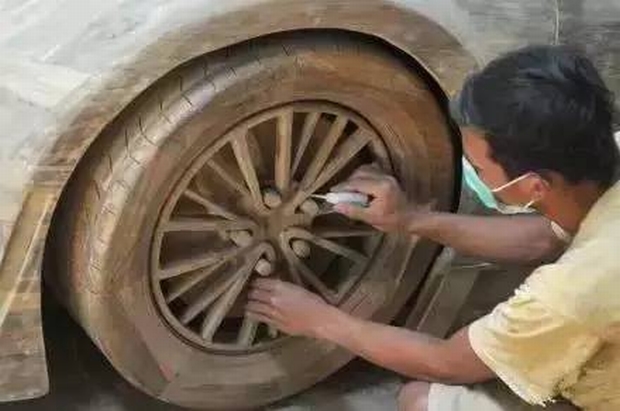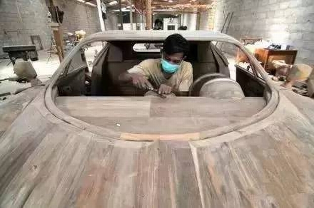 還有一位小伙子,為了追上自己心愛的白富美,也為了討好未來的丈母娘,竟然瞞著他們自己親手用紅木造起布加迪
