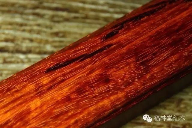 小葉紫檀還有一個特性,因為小葉紫檀的材質十分致密堅硬,久露空氣后,心材鮮紅色或橘紅色,條文變紫紅褐色,紋理纖細而且顯得在浮動,變化萬千,其樂無窮,并帶有有芳香。